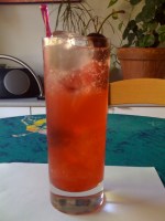 In mixing glass muddle cherries and syrup. Add BOMBAY SAPPHIRE, lemon juice, and vermouth. Fill tall zombie glass 1/3 full of ice and add one pitted cherry…Continue to fill glass ice with cherries until glass is full. Shake and double strain into glass and top with chilled soda and fresh lemon twist.