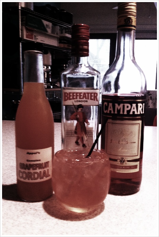 This cocktail gets an extra .25 oz of cordial because of the sweetness and bitterness of the Campari. As always it is up to ones taste.